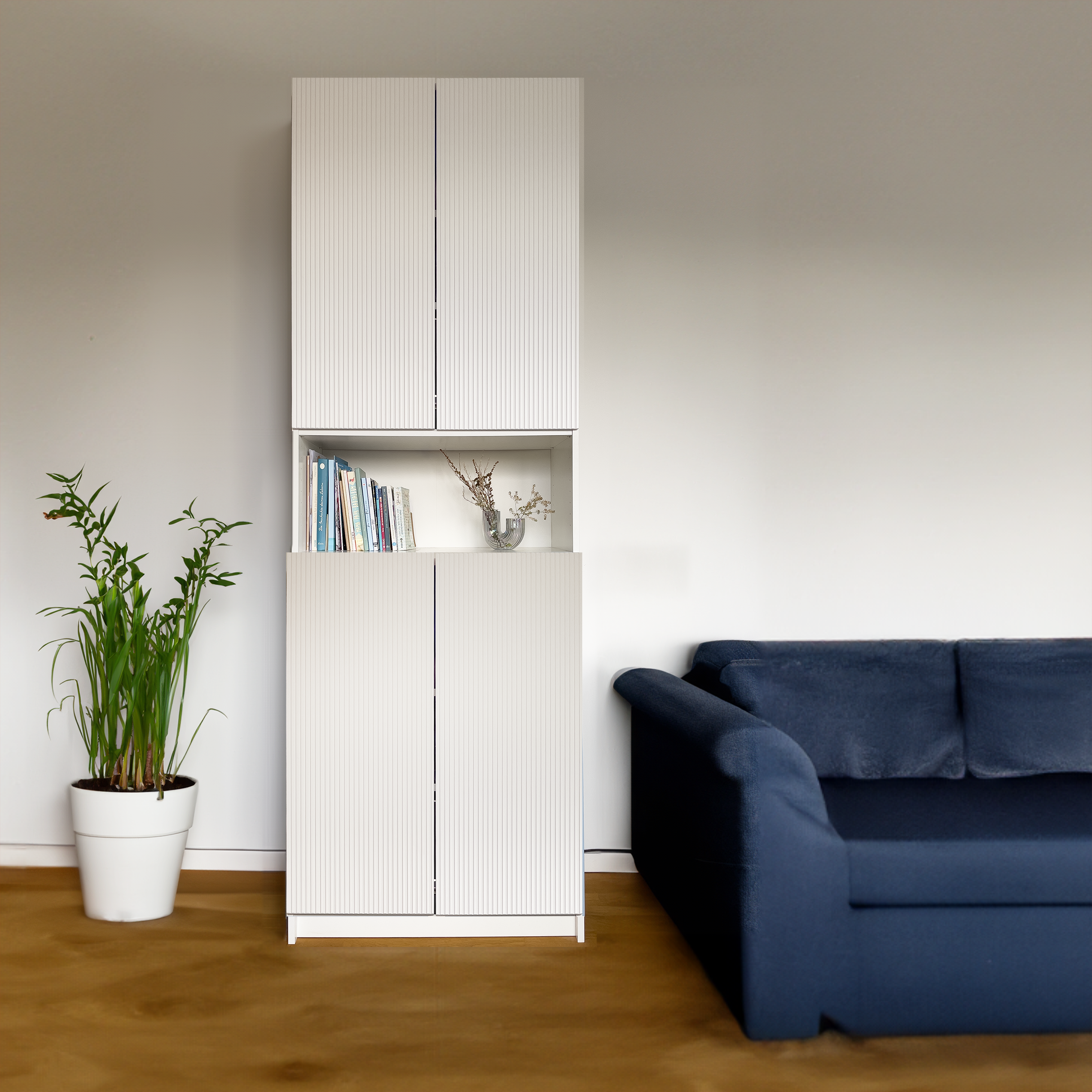 Unsere gefrästen Türen mit vertikalen Linien verleihen deinem Billy* Regal einen besonders eleganten Look.