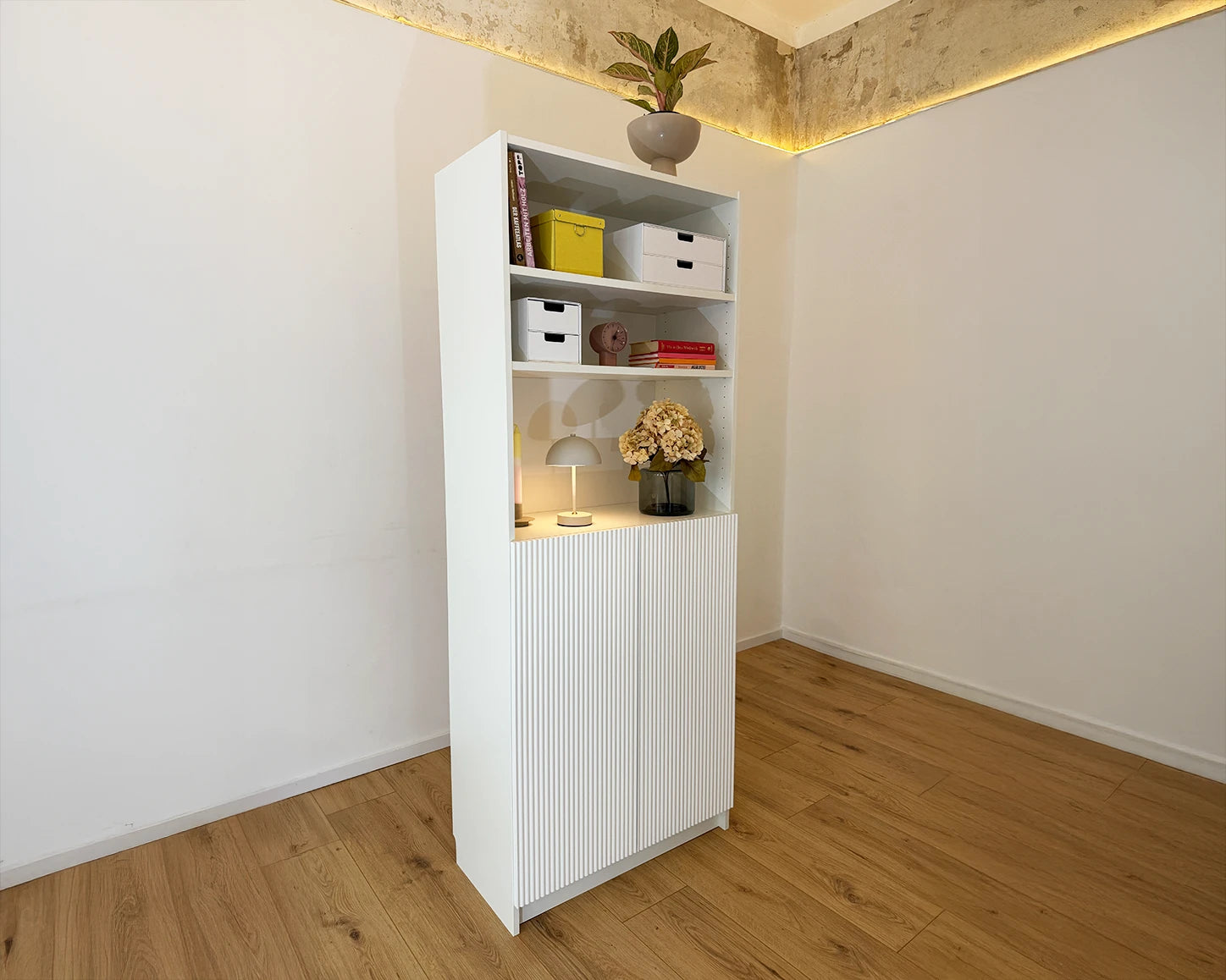 Geriffelte Möbelfronten liegen voll im Trend. Verpasse deinem Regal also unbedingt einen neuen, modernen Look mit unserer Tür in geriffelter Optik.